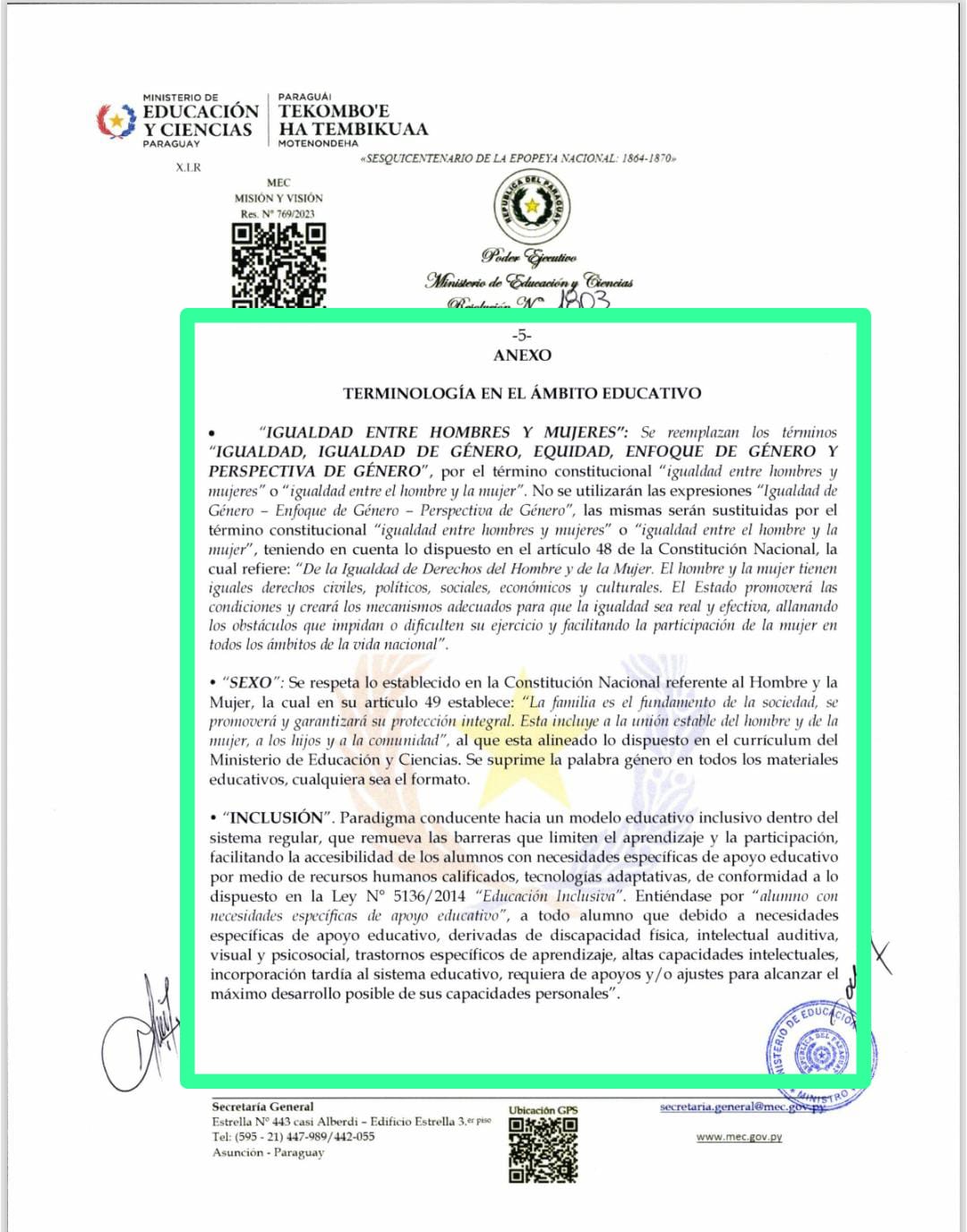 Agradecemos a las autoridades del Ministerio de Educación, el Sr. ministro Don Luis Ramirez, al Sr. Aníbal Zapattini, jefe de Gabinete y por su intermedio a todos los involucrados del departamento de Asesoría Jurídica del MEC por velar y proteger a los niños de nuestra republica mediante esta resolución